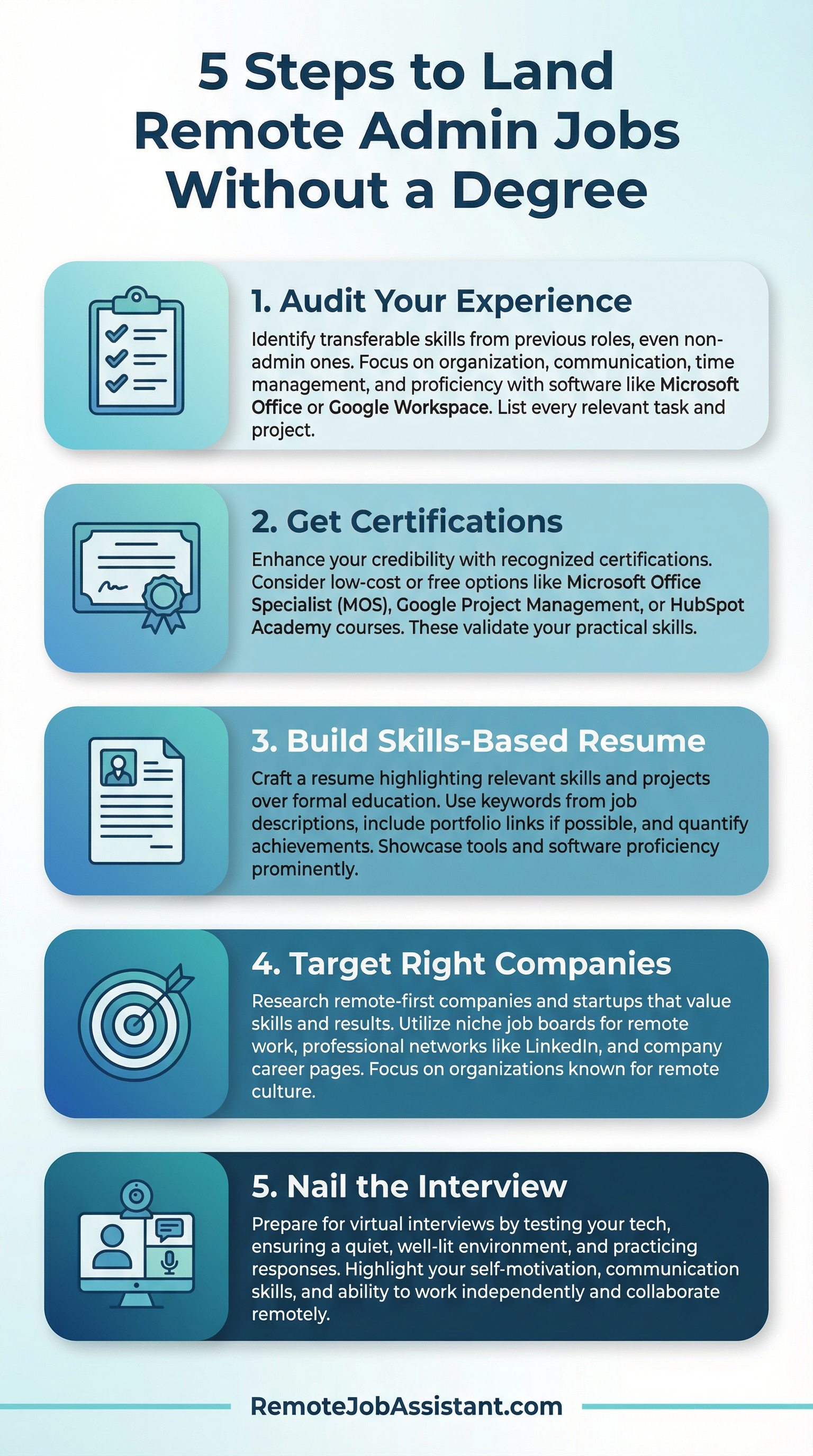 These companies actively recruit remote administrative talent without requiring degrees. I've verified each one hires for these roles and confirmed their remote policies.