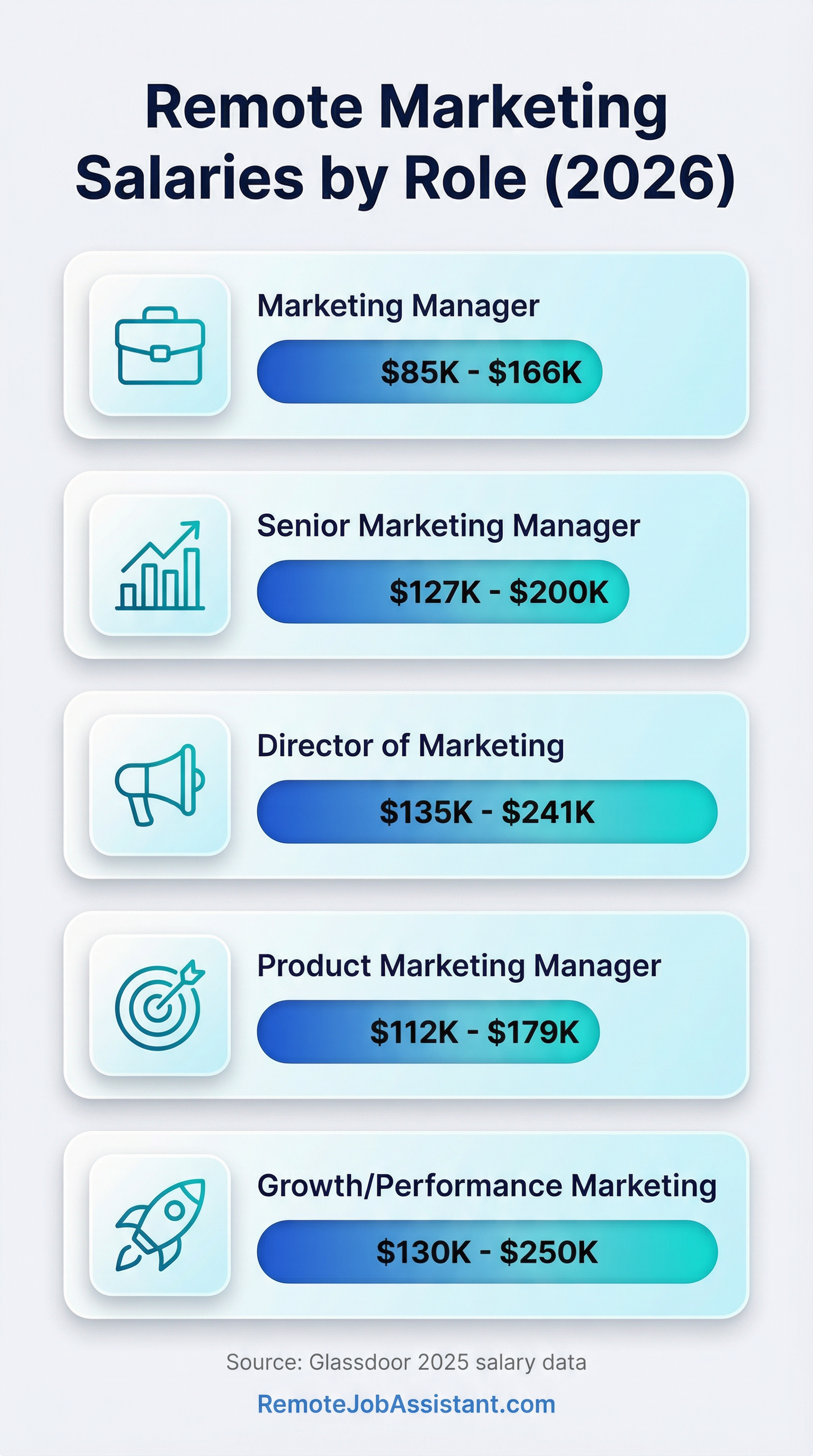 Product marketing consistently pays the highest in remote marketing. These roles own positioning, launches, and sales enablement—directly tying to revenue.